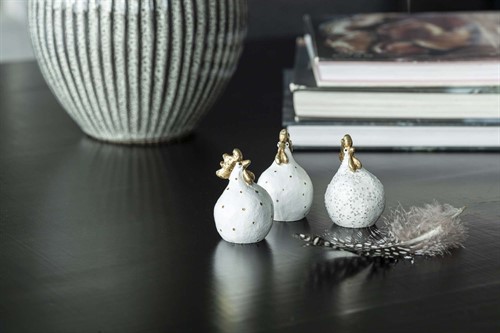 This little trio with glitter and glamor is just as suitable to be present all year round as decoration for Easter. All hens are hand-painted, which makes them unique, discrepancies between image and product may occur.