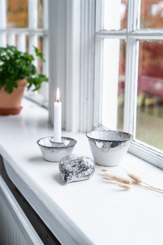 Bubble dekorationshjärta kan användas som dekoration vid bordsdukning, blomsterarrangemang, servetttyngd eller kanske ge bort som present till någon du tycker om. Hela serien är handgjord och bubbelmönstret skiljer sig mellan produkterna, detta skapar en lekfullhet och en känsla av genuint hantverk.