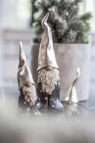 Tomten Fritte är en riktig funderare, han älskar allt från gröt och godis till gröna växter. Med sin skruvade luva i skimrande silver och sitt lurviga skägg letar han alltid efter bästa platsen i hemmet där han skapar en härlig julstämning.
