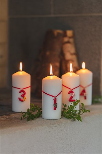 Siffror med röda satinband, lätta att knyta runt ljusen advent. Dessa är alla handmålade vilket gör varje produkt unik.