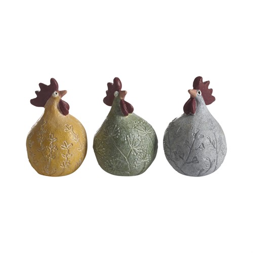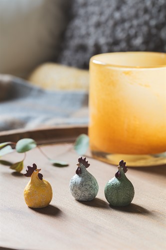 Höna Flores 3-p vit, gul, grön H.5,2cm